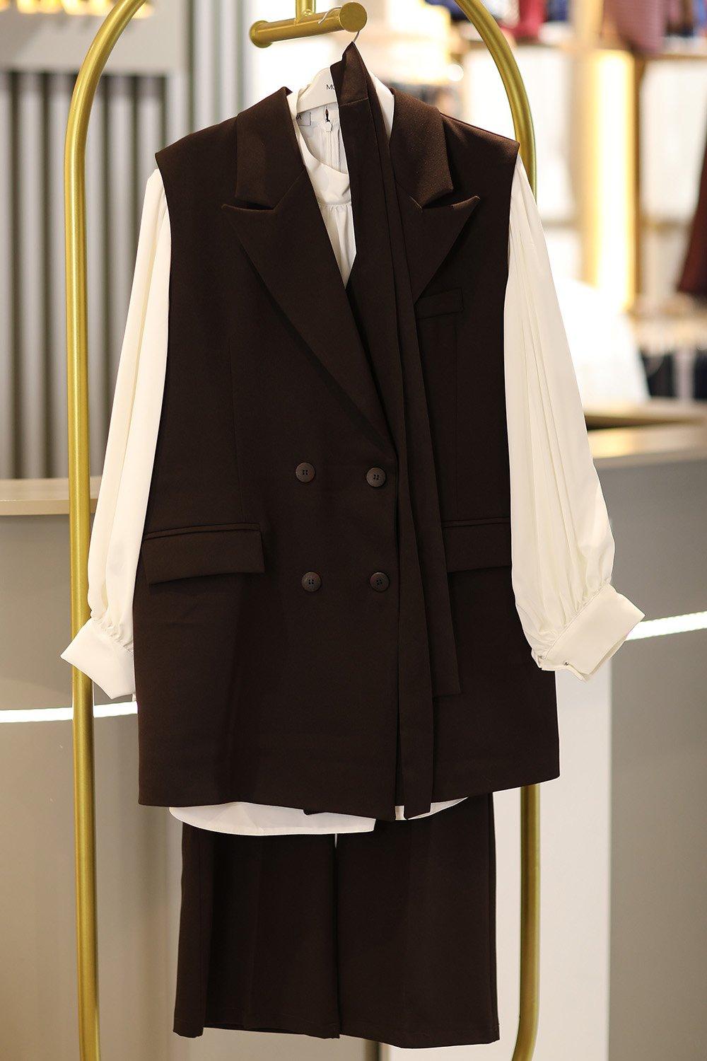 Alya Kruvaze Yelekli Tesettür Takım Acı Kahve