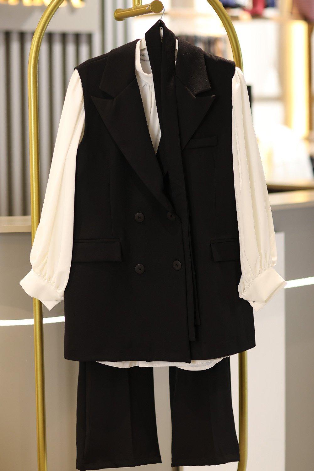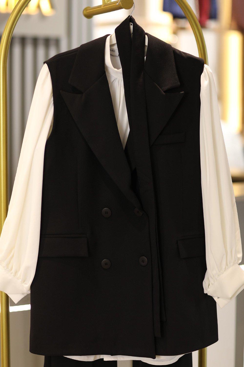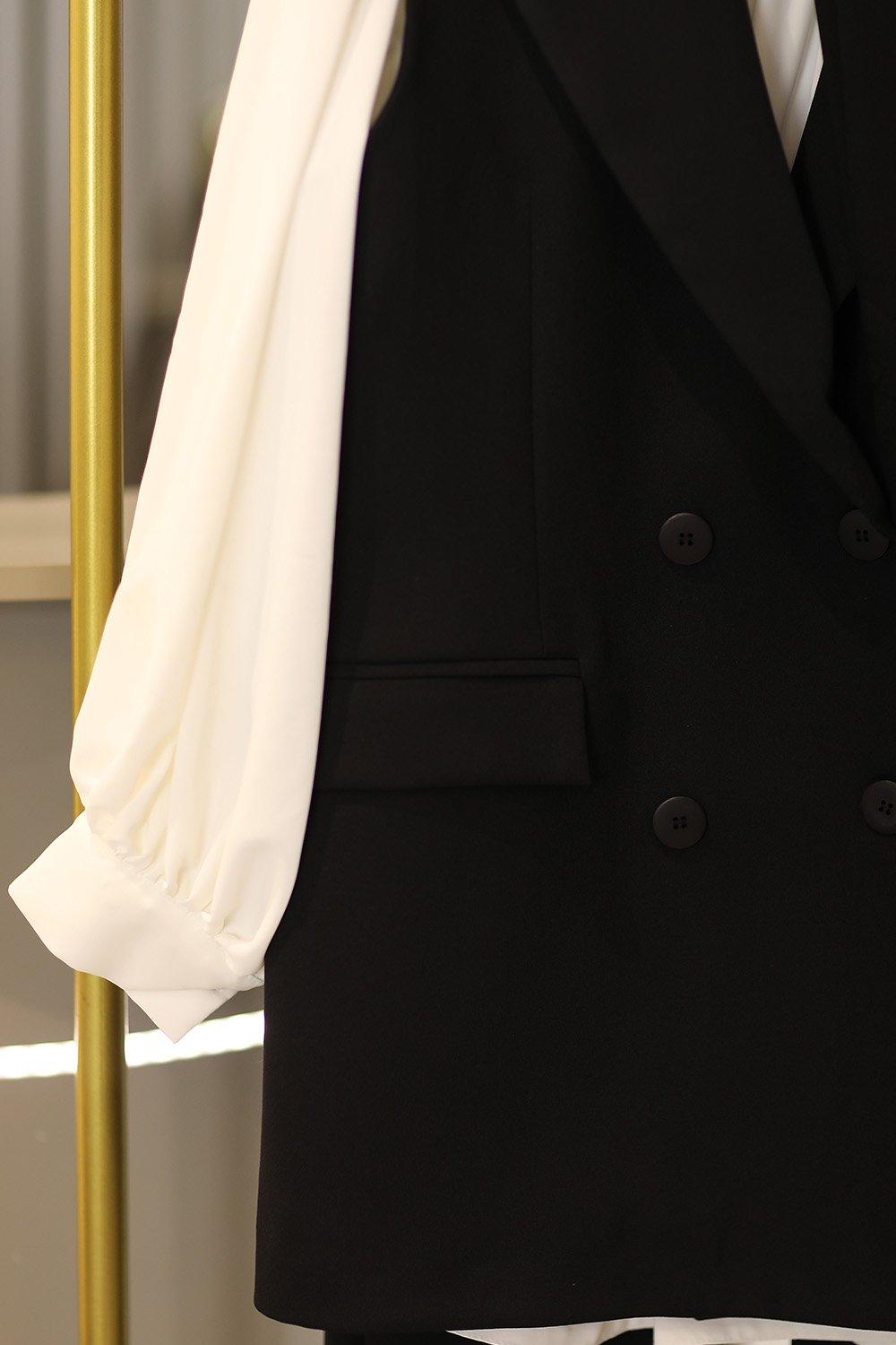 Alya Kruvaze Yelekli Tesettür Takım Siyah