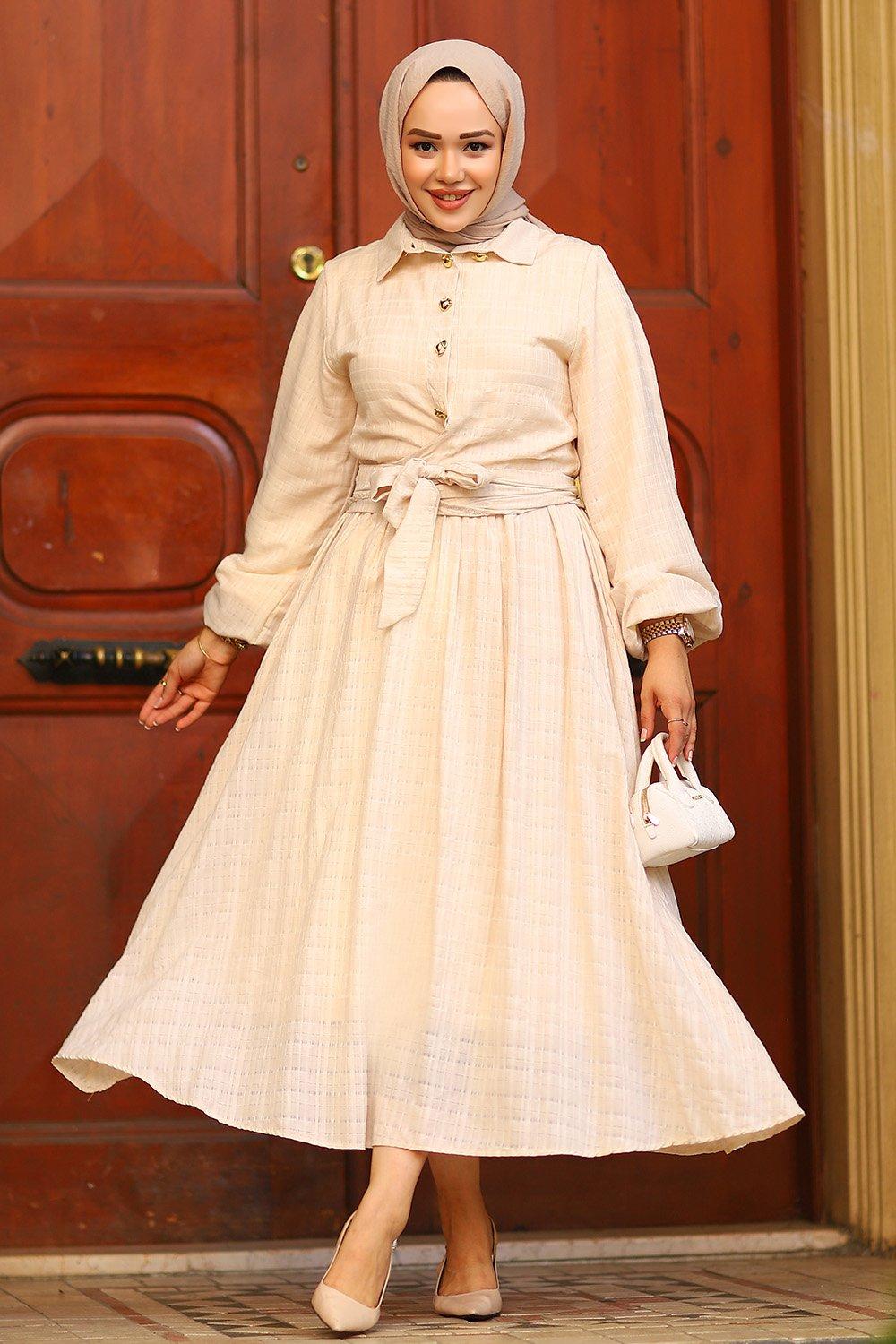Bağlama Detay Tesettür Etekli Takım Bej