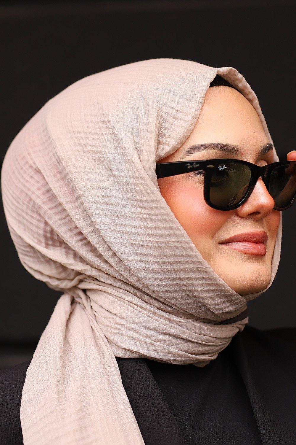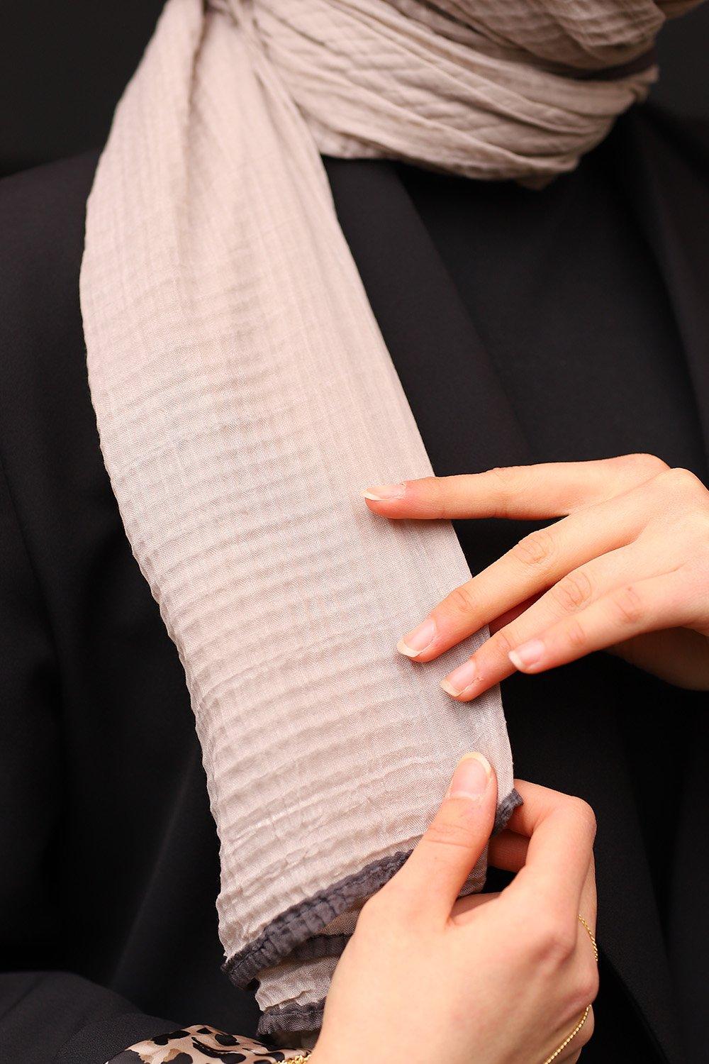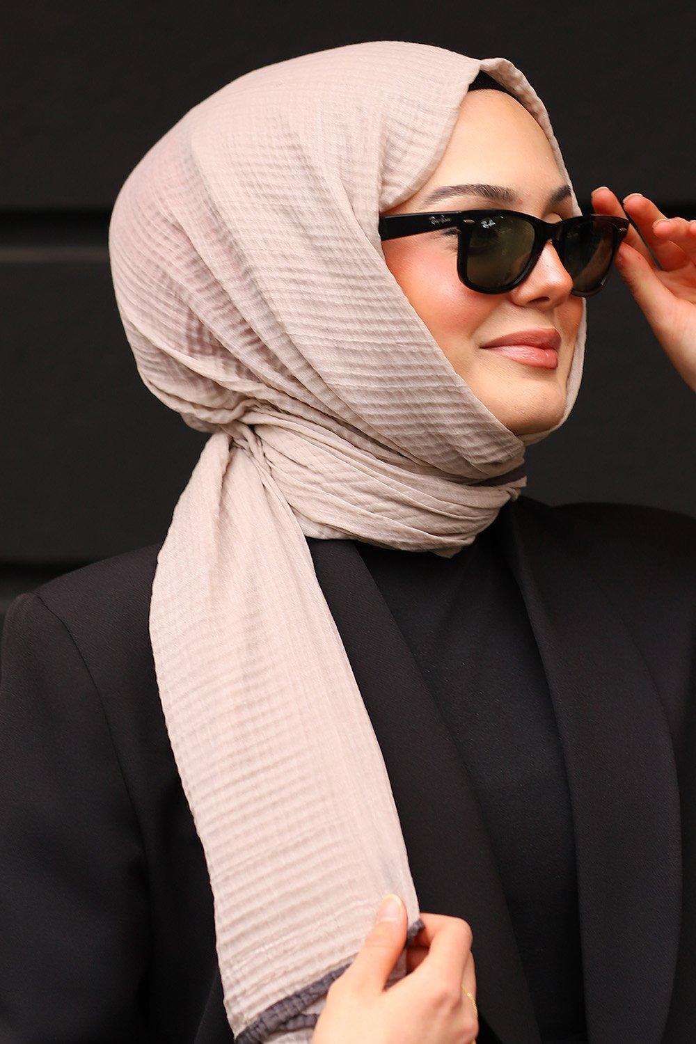 Bej Gri Premium Müslin Biyeli Şal