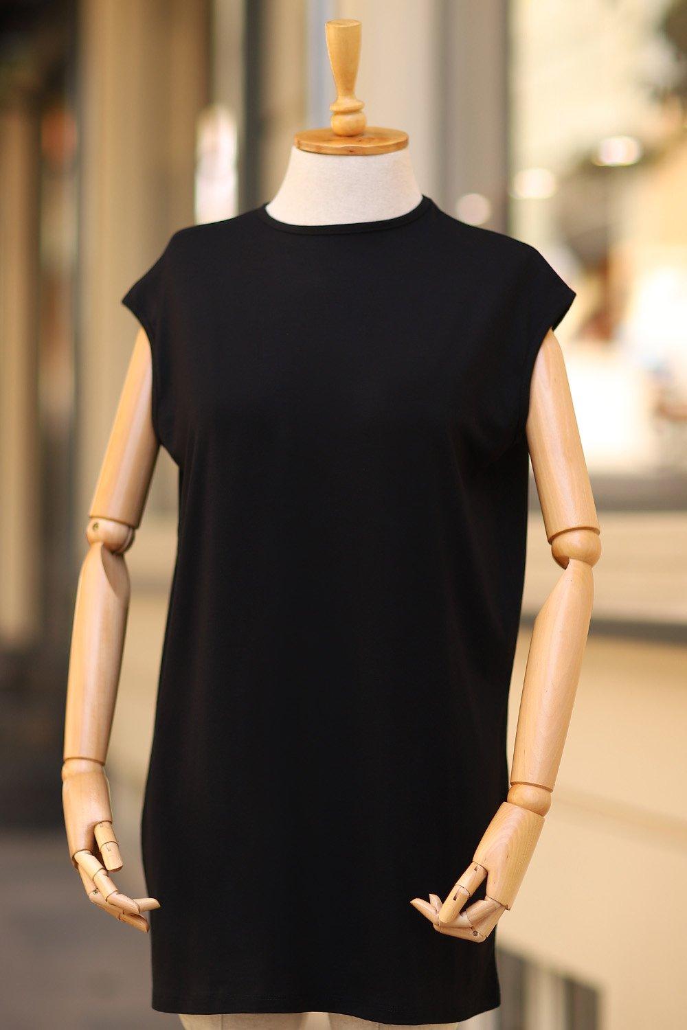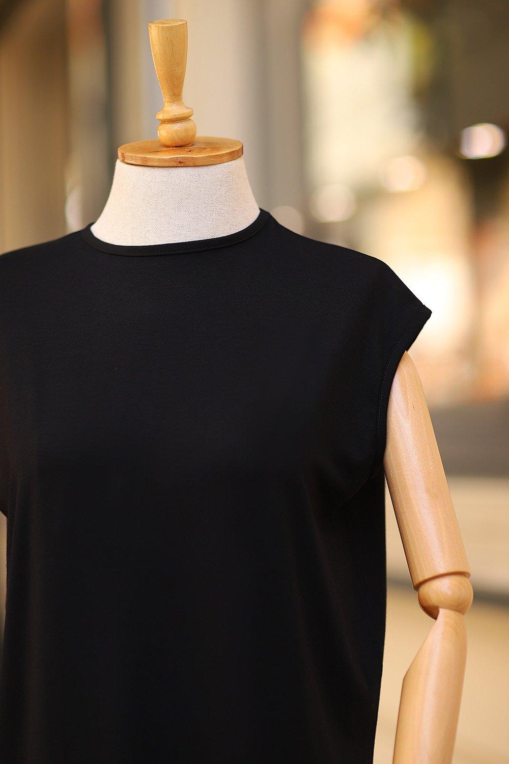 Bisiklet Yaka Sıfır Kol Penye İçlik Siyah