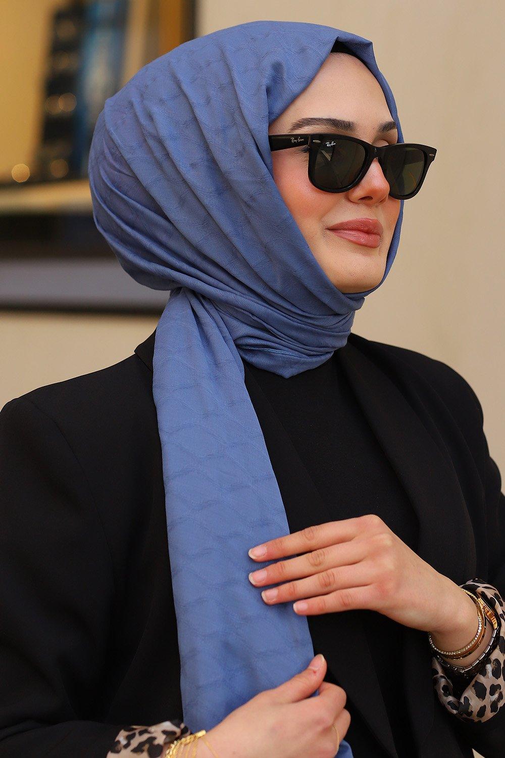 Çift Taraflı İpeksi Pamuk Jakar Kumaş Elmas Desen Tesettür Şal Serisi Açık Mavi