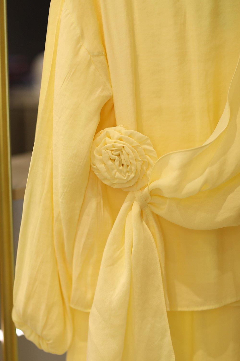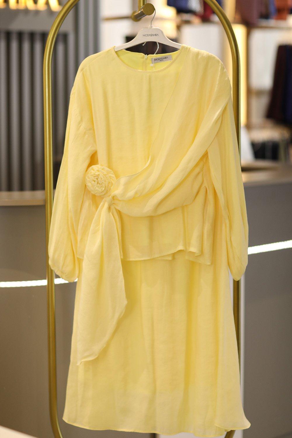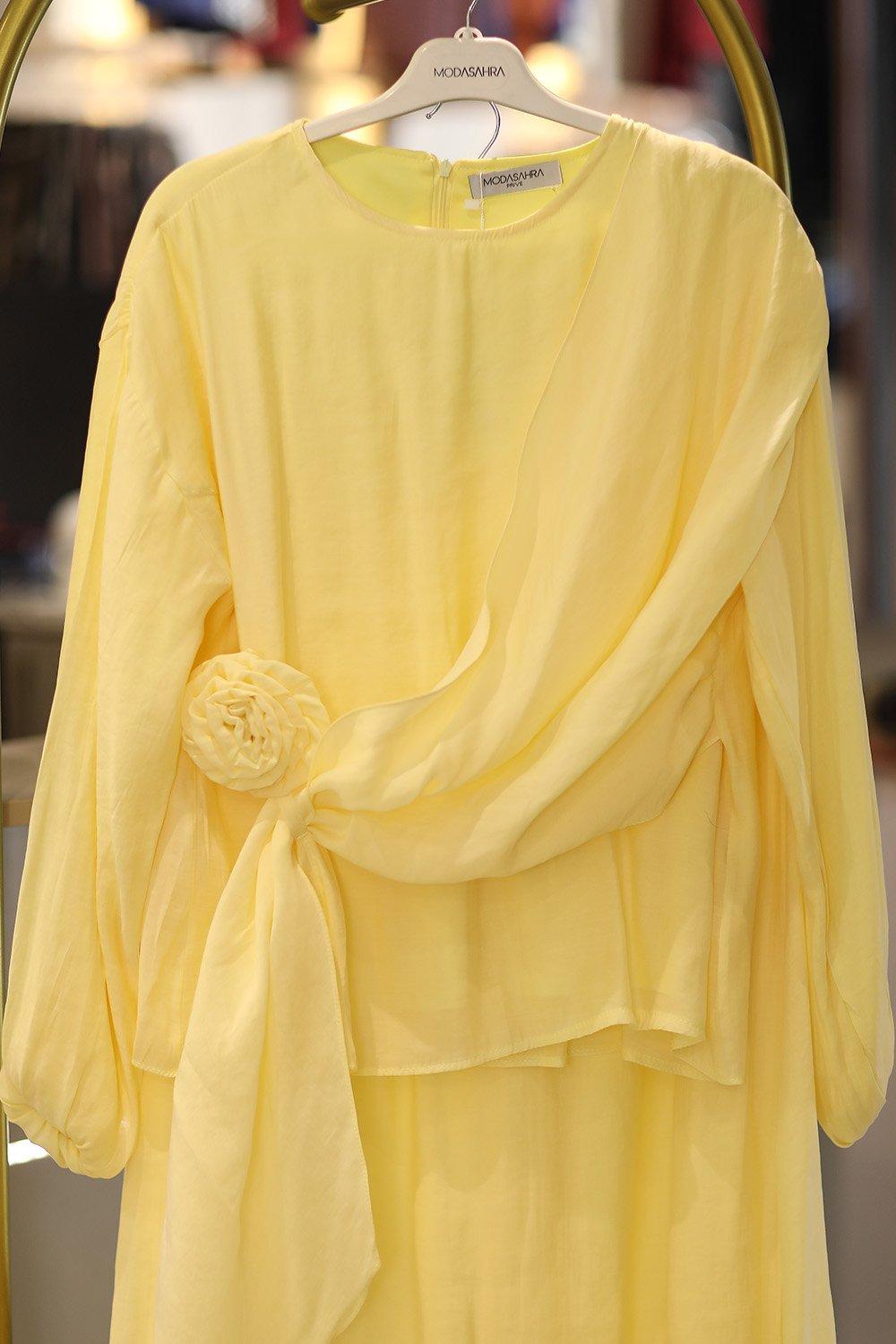 Gül Drapeli Tesettür Etekli Takım Sarı