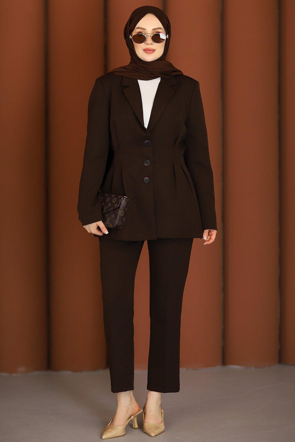 İnci Premium Blazer Tesettür Takım Acı Kahve
