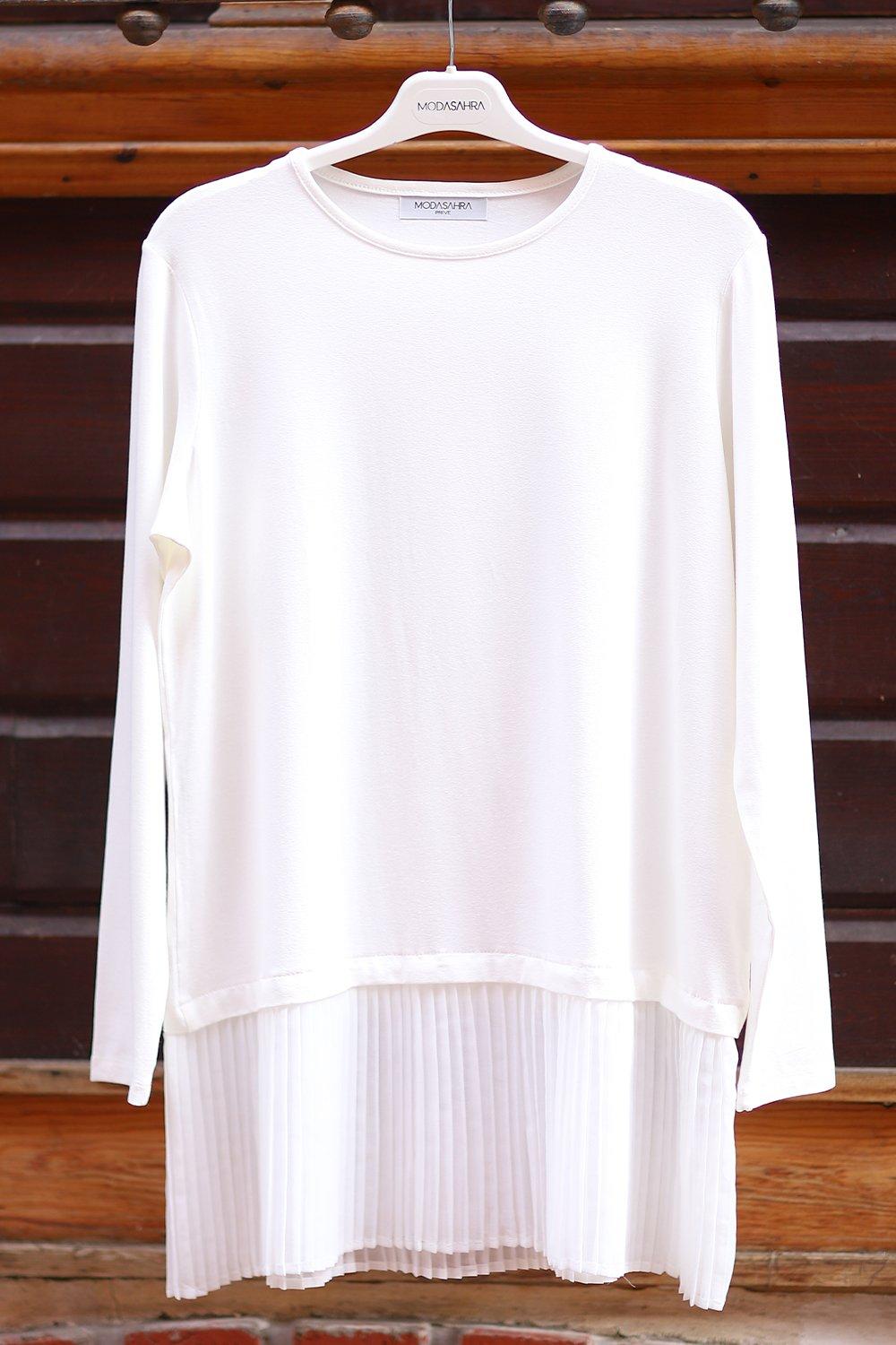 Piliseli Kollu Penye İçlik Beyaz