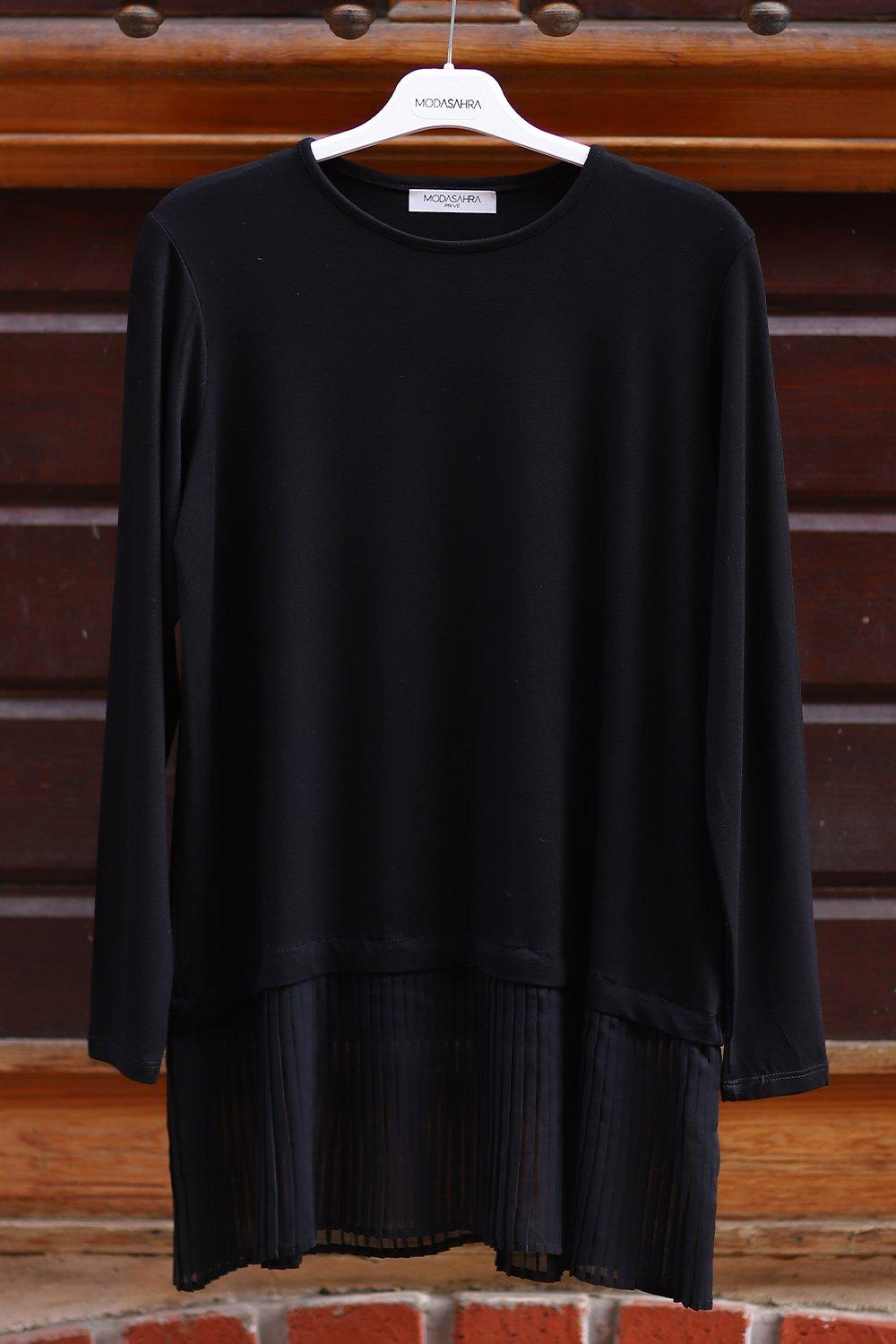 Piliseli Kollu Penye İçlik Siyah