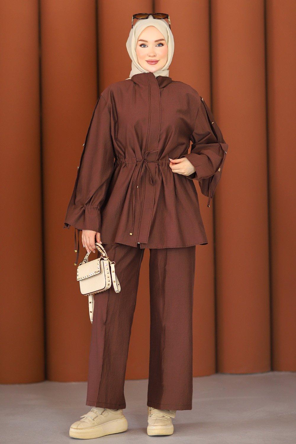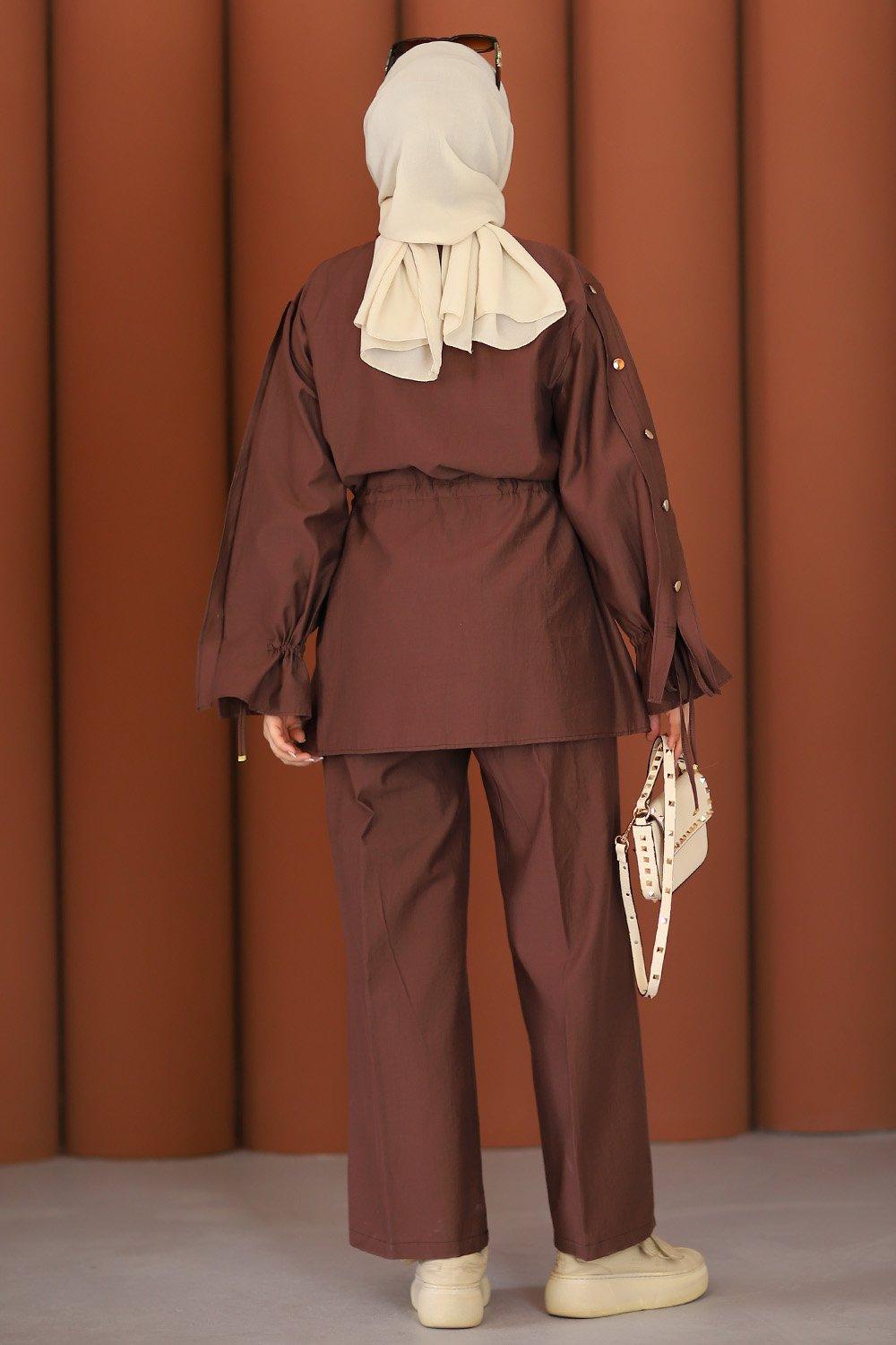 Premium Büzgü Detay Tesettür Takım Acı Kahve