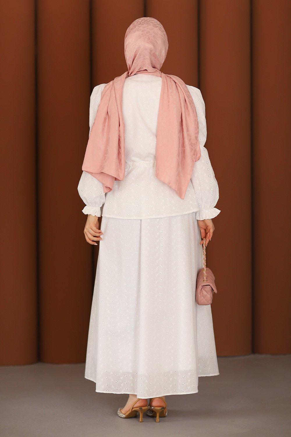 Premium Fisto Tesettür Etekli Takım Ekru