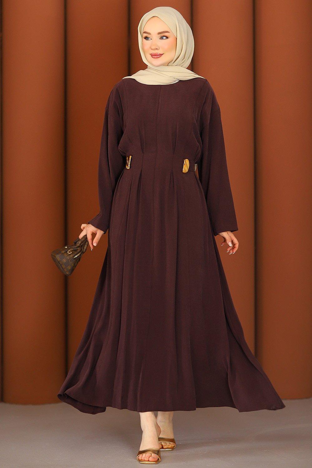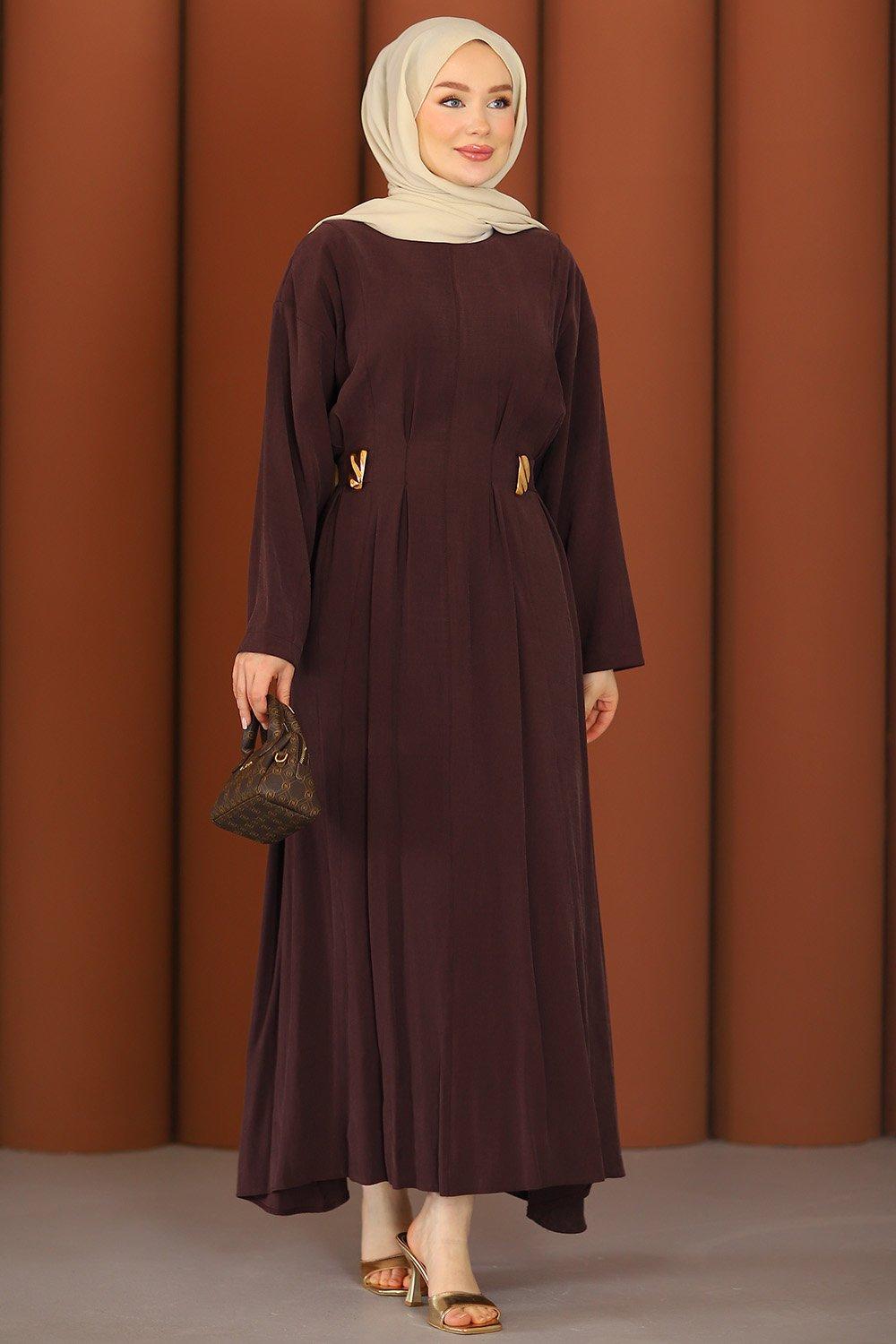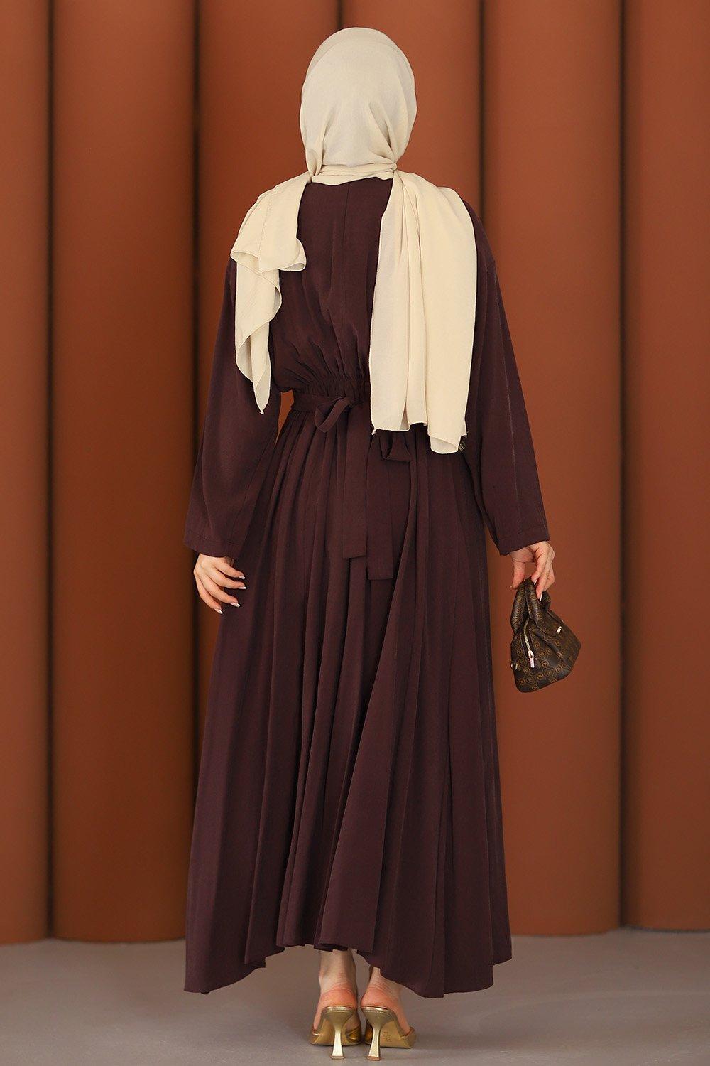 Premium Flora Tesettür Elbise Acı Kahve