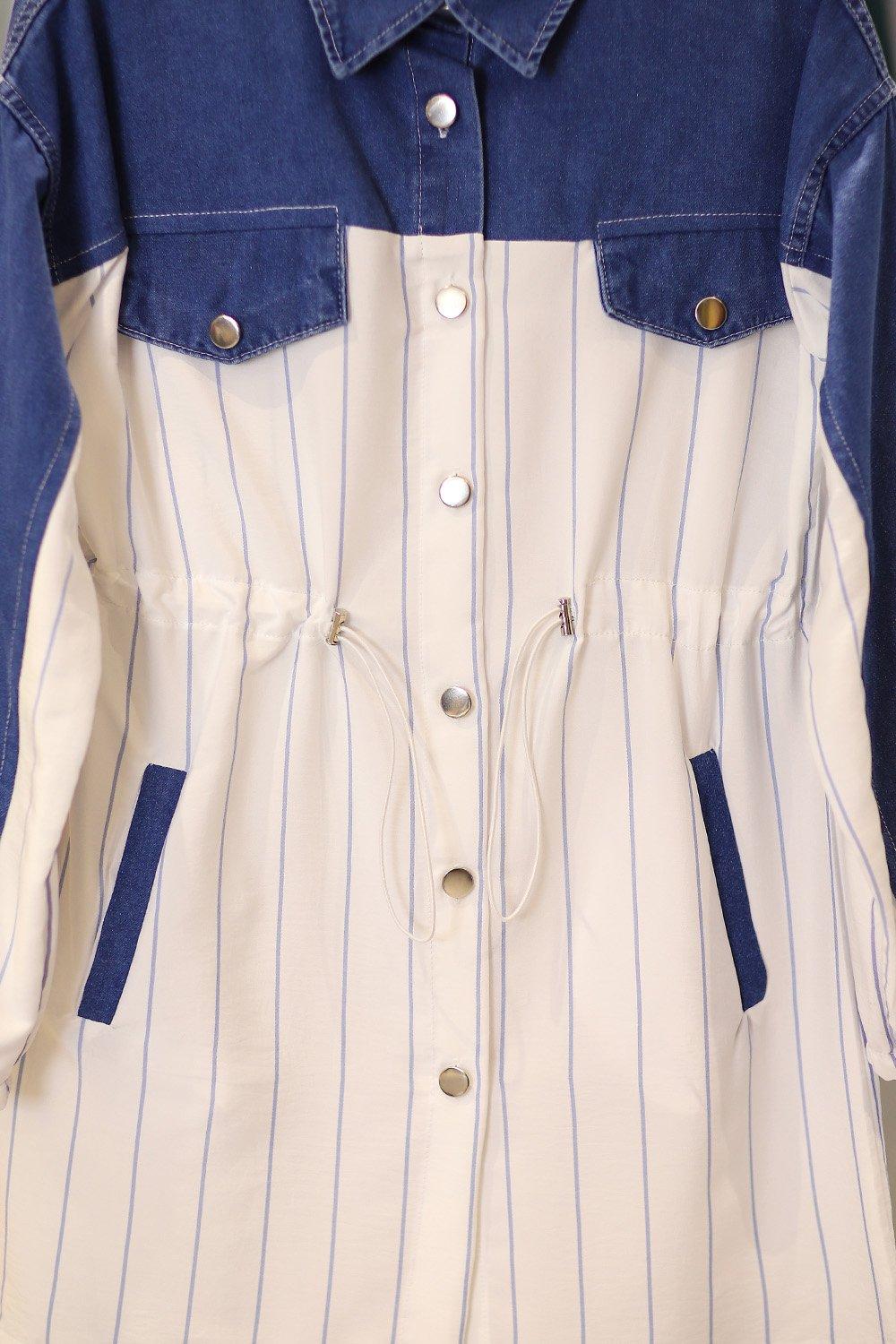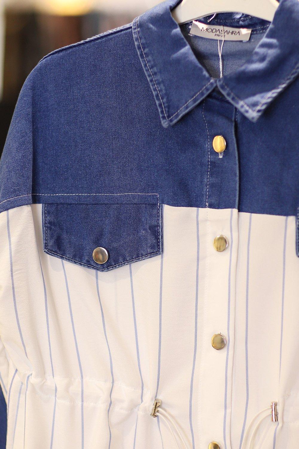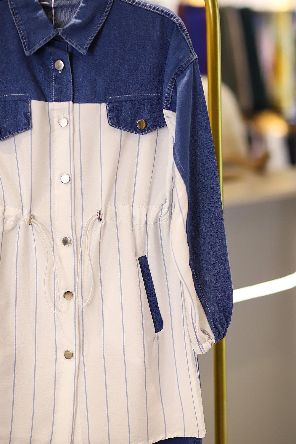 Premium Kalite Çizgili Kot Tesettür Takım Orta Lacivert