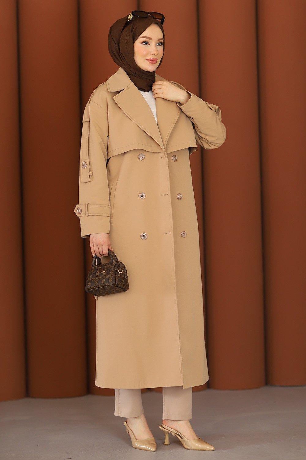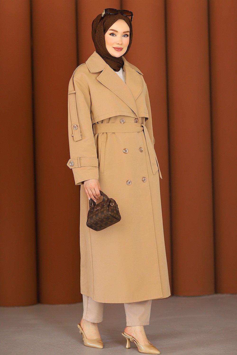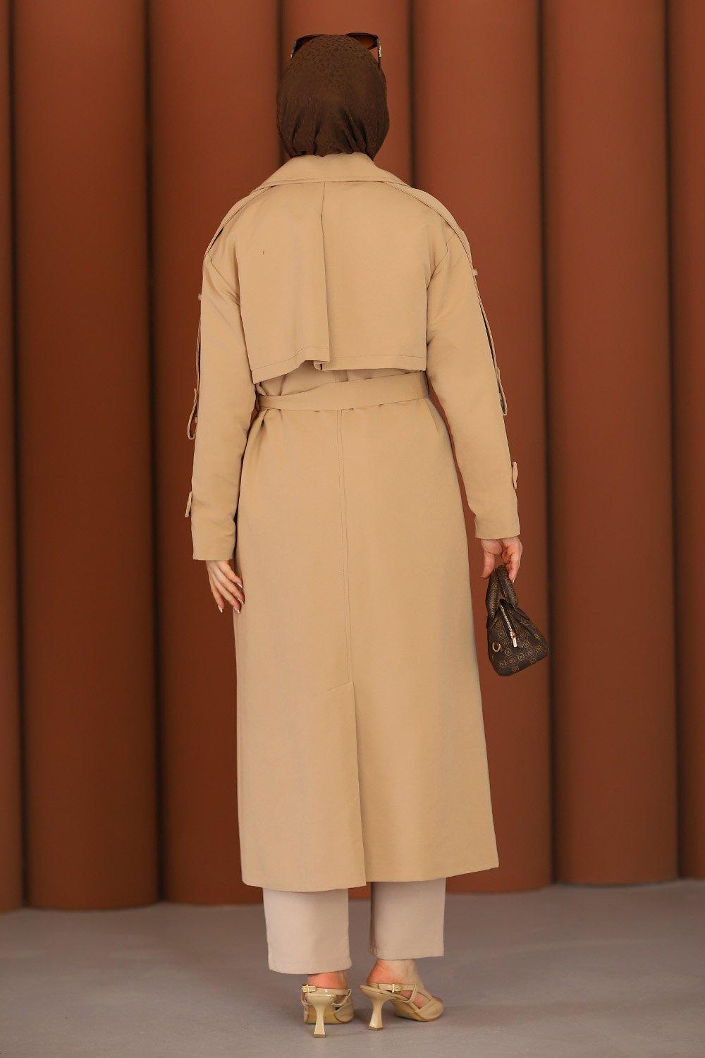 Premium Sahra Tesettür Trençkot Camel