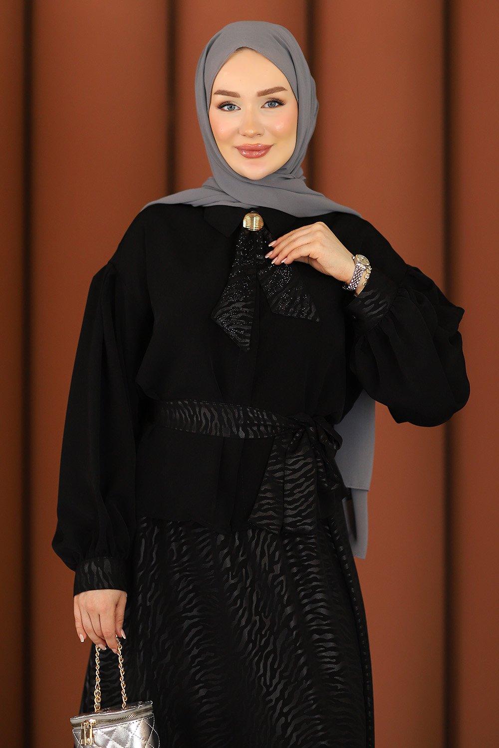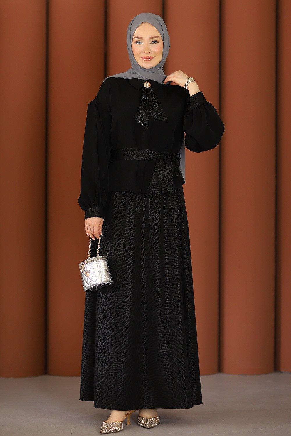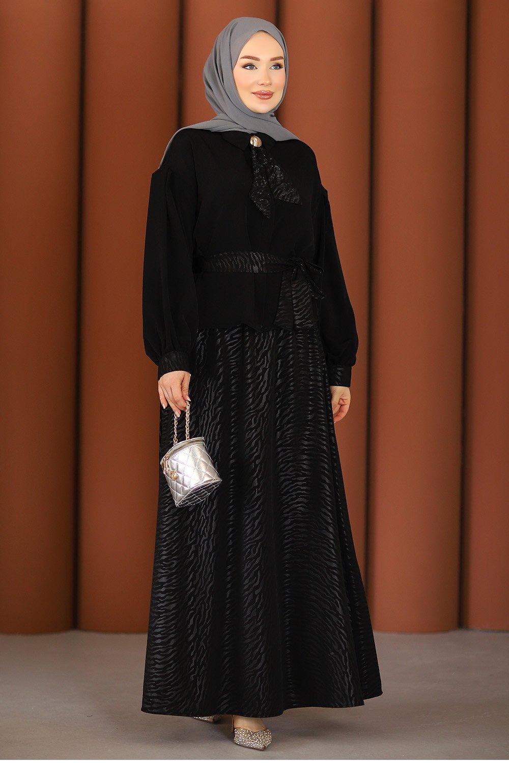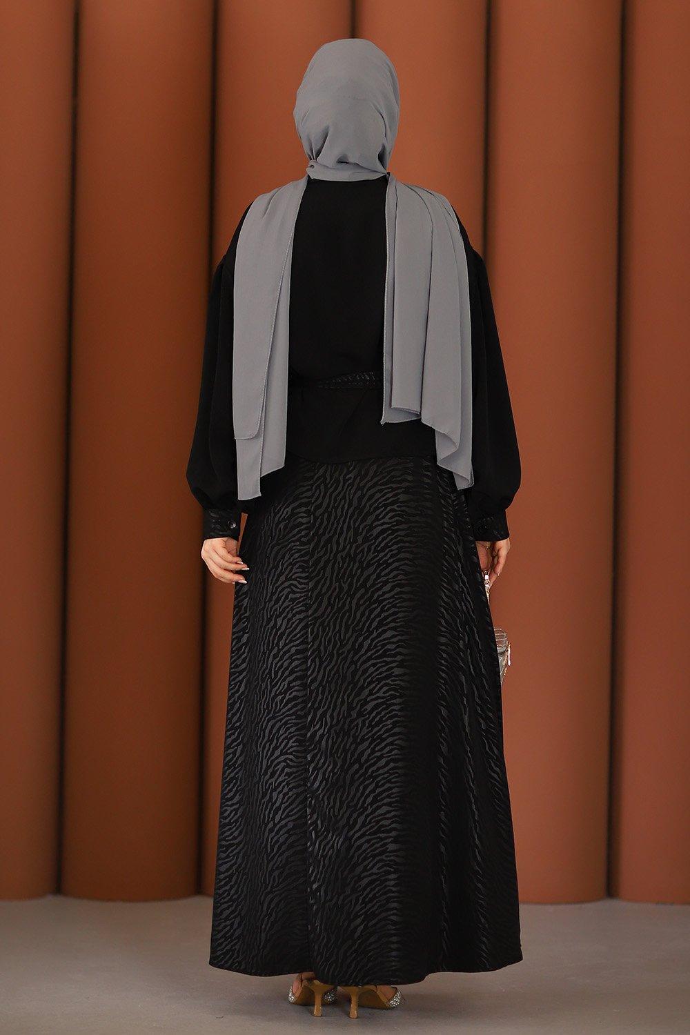 Premium Şık Tesettür Etekli Takım Siyah