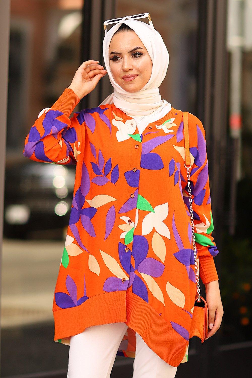Yapraklı Viscon Tesettür Gömlek Oranj